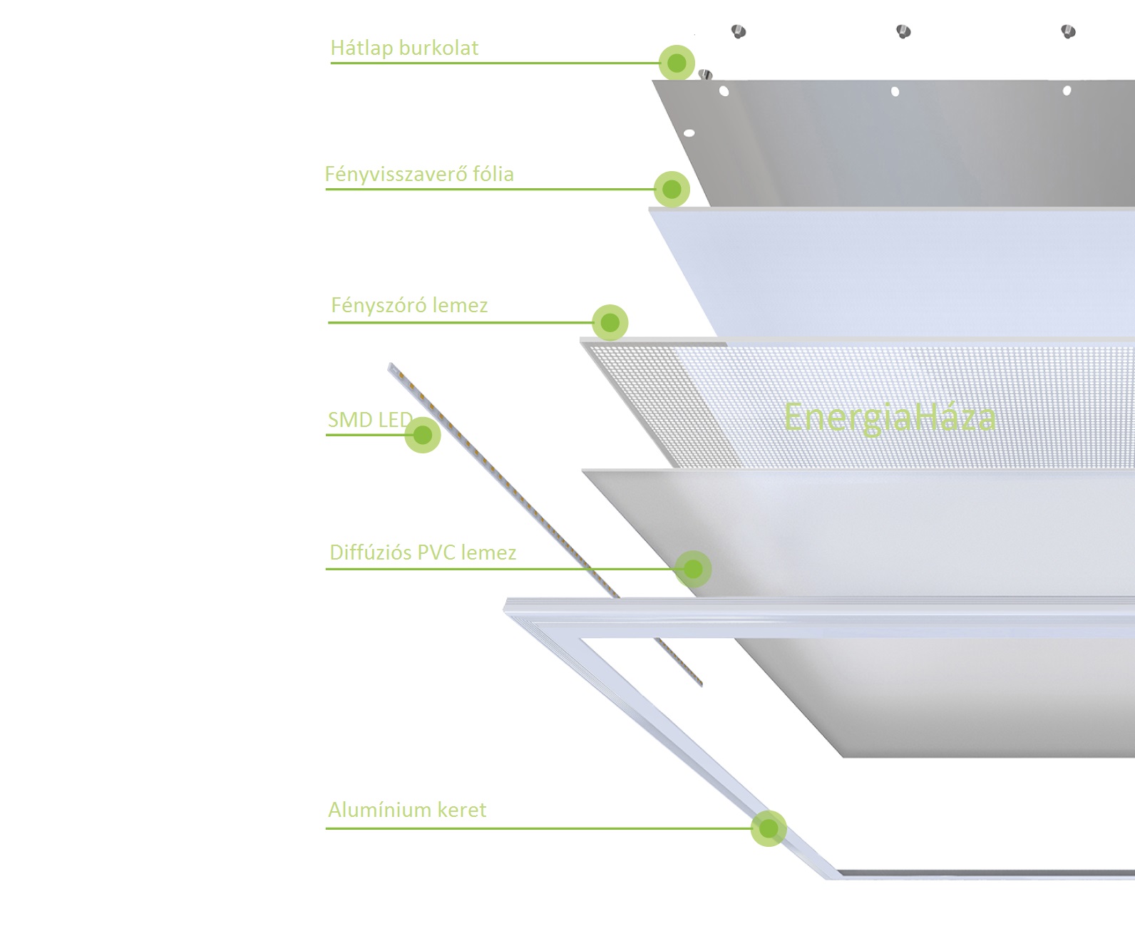 A LED Panel a fényszórás elvén működő lámpatest, ahol a fényforrást egy nagy fényerejű, magas lumen értékű SMD szalag biztosítja. A szalag a keret 2 ellentétes oldalán helyezkedik el vagy nagyobb fényerejű (szakmai nyelven fényáramú) LED panelek esetében minden oldalon elhelyezik a szalagot. Ebből adódóan a lámpatest a legegyenletesebb fényt akkor biztosítja, ha minden oldalon elhelyezett szalaggal rendelkezik. A panelek árazása részben ennek, részben pedig a meghajtó tápegységnek a minőségétől függően kedvezőbb vagy magasabb. A jó panelekhez jobb és erősebb tápegység is tartozik, valamint a felépítésükben is van eltérés. A prémium panelekben lévő szalagok hosszabb élettartammal és minőségibb chippel is vannak szerelve. Az egyenletes fényt a fényszóró lemez és a diffúzor előlap biztosítja, utóbbi a sérülésektől is védi a panelt, míg a fény nagymértékű visszaverődéséért a fényvisszaverő fólia felel. A fényszóró lemez a fénytörés és vezetés elvét követve biztosítja az egyenletességet. A mechanikai stabilitásért a rétegeket egy fém keretbe helyezik, majd egy hátlappal lezárják, így minden oldalról védett. A LED panelek tartalmaznak általában nagyon vékony üvegből készült réteget is, ezért érzékenyek a szállításra. Az EnergiaHáza csak olyan gyártók LED paneleit forgalmazza, amellyek termékeikhez rendelkeznek a megfelleő minősítésekel és bevizsgálásokkal, valamint globálisan jelen vannak a világítástechnikai piacon minőségi fényforrásaikkal.